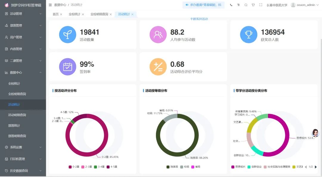 为破解传统教育评价中目标模糊、内容片面、方法单一等难题,长春中医药大学自2018年5月起实施“第二课堂成绩单”制度,将其正式纳入人才培养方案,作为学生综合素质评价的重要依据。学校依托“到梦空间”平台,构建特色运行机制,推动第二课堂评价从体系构建向个性化赋能转变,着力探索解决高校评价中长期存在的“重智育轻五育、重结果轻过程”问题。