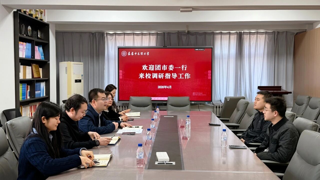 4月1日,团市委学校部负责人于锡锰一行来校调研指导2027长春大冬会志愿者选拔等相关工作。