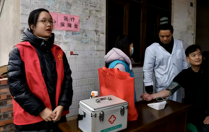 健康服务温暖桑梓。附属医院、中医学院、中医骨伤学院学子主动对接家乡医疗机构,在带教医师指导下开展常见病筛查、健康档案建立、针灸推拿理疗等服务。护理学院37名学生在吉林大学第一医院、敦化市中医院等单位开展导诊陪诊、急救知识宣讲,将专业知识转化为通俗易懂的“大白话”。康复医学院学子结合专业特长,在社区和医疗机构为患者提供康复指导,用专业能力回馈家乡人民信任。临床医学院樊嫣然同学在四川省宜宾市江安县下场镇长兴社区文化节中担任医疗志愿者,负责健康检测与急救保障,在实践中体悟到基层医疗既是技术应用,更是温情守护,坚定了做一名温暖“健康守门人”的志向。
